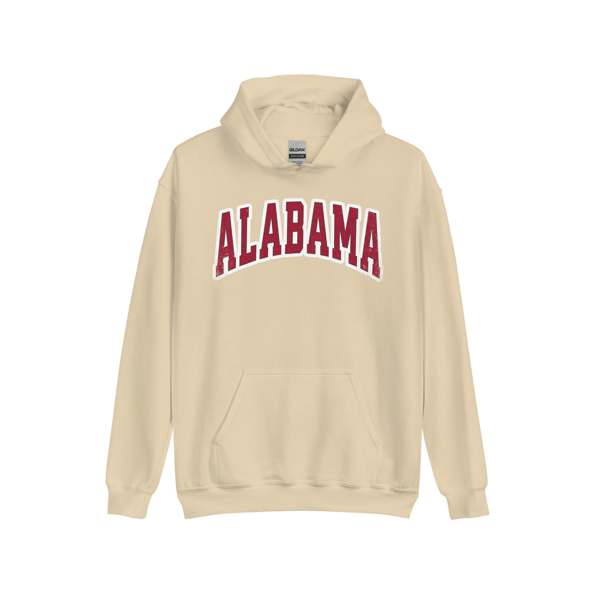 A vintage-inspired Alabama hoodie your closet needs. This hoodie features distressed crimson varsity arch lettering that feels straight out of an old-school college bookstore. It’s soft, lightweight, and easy to throw on for SEC Saturdays, tailgates, or everyday Bama pride.