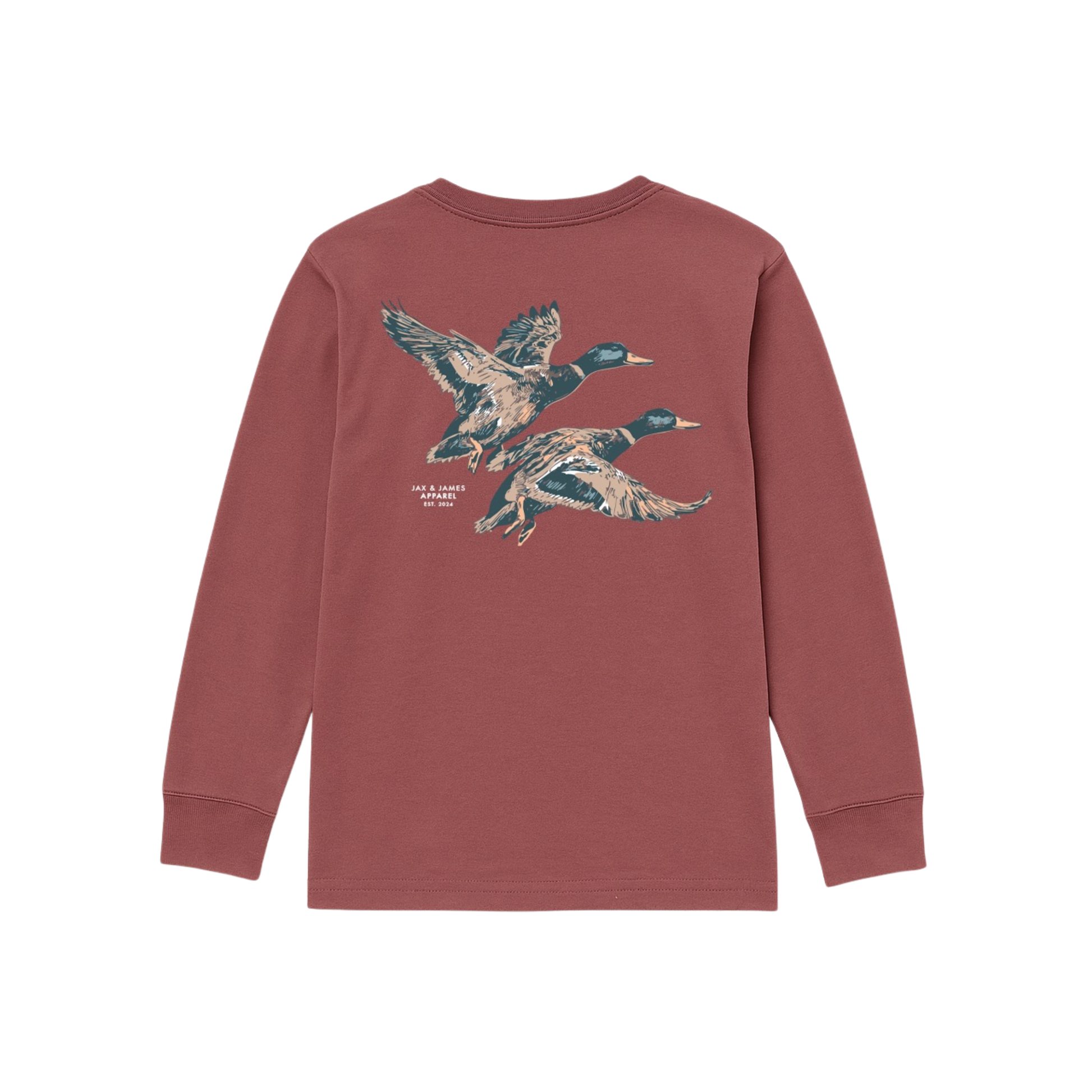 A classic outdoor design. Southbound Flight features two detailed mallard ducks in motion — timeless southern artwork that pairs perfectly with fall and winter wardrobes. Ideal for hunters, outdoorsmen, or anyone who loves a classic wildlife design.